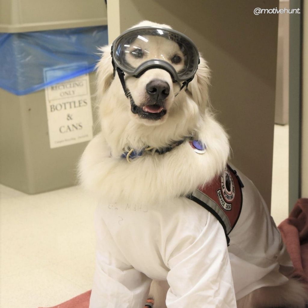 Adorable Service Dog Wears PPE To Support Disabled Scientist In The Lab