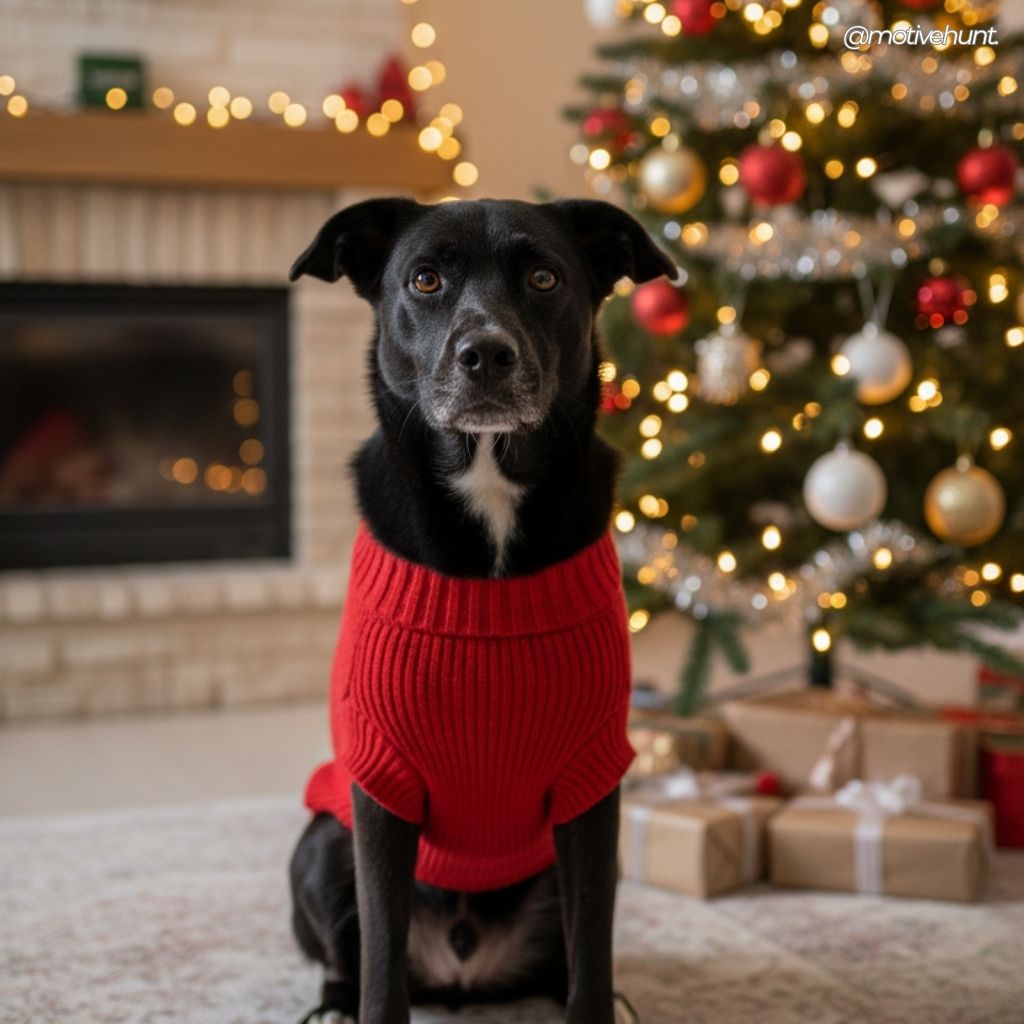 With time, effort, and love, Keanu grew stronger and happier. He even became protective of his new family. That Christmas, he wore a red outfit proudly, celebrating his first holiday in a safe home.